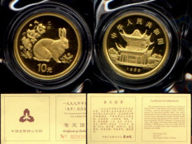 10 Yuan 1/10 oz. 999er Gold aus 1999, org. verschweißt mit Zertifikat,