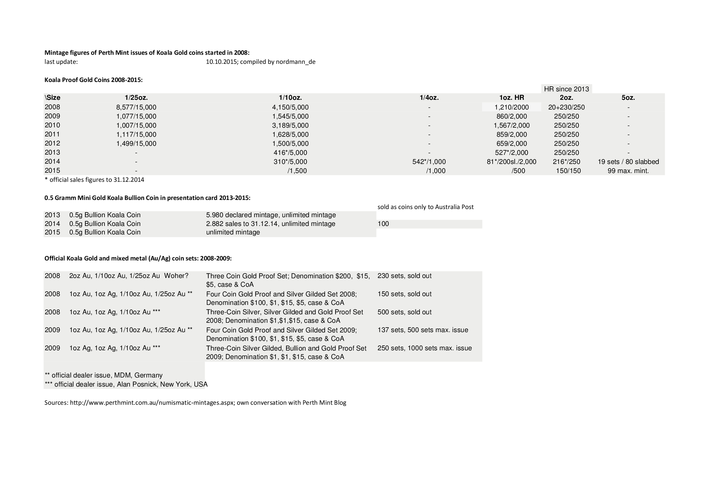 Die Angaben sind in englischer Sprache, da ich doch vieles mit der Perth Mint