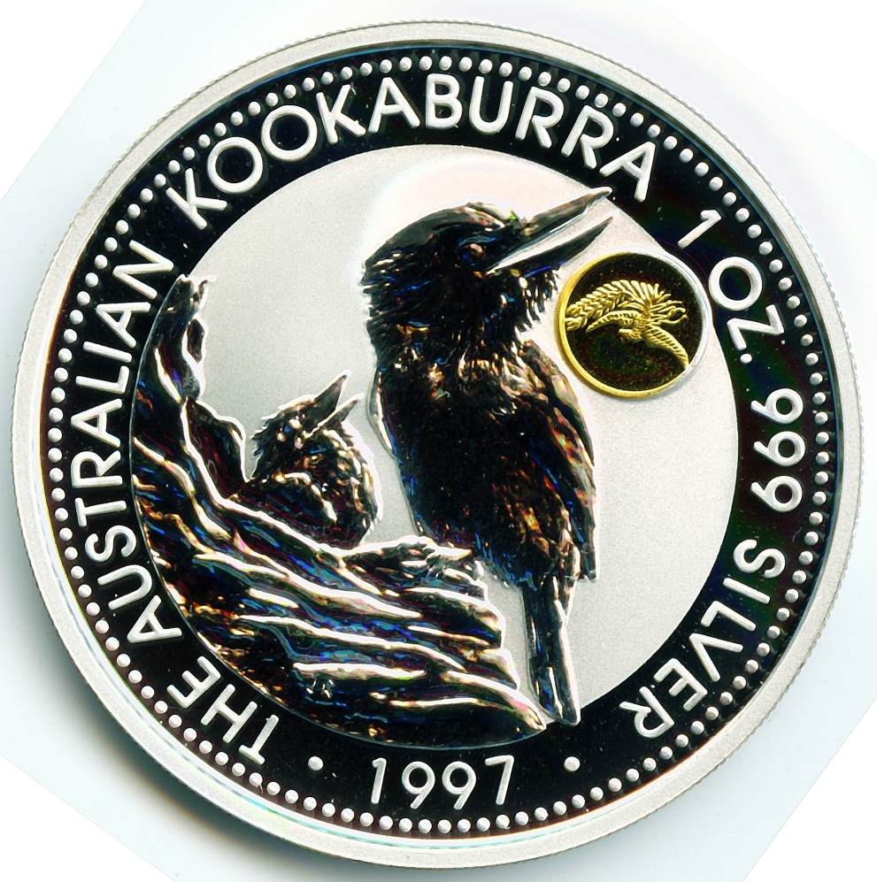 Ein gescannter 1997er 1OZ Kookaburra mit Privy Mark "Phoenix" Revers 25% und 50% bei 1200DPI.
