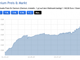 Osmium kennt die Welt damit schon seit über 200 Jahren (Roh-Osmium ist giftig da es Osmiumtetraoxid bildet), aber erst seit 5 Jahren wurde ein Prozess entwickelt um aus Roh-Osmium kristallines Osmium zu kristallisieren. (Mehrere Wochen im Hochofen, bei speziellem Druck, Temperatur und einem speziellem Gasgemisch wird aus Roh-Osmium kristallines Osmium) Durch den Kristallisations-Prozess ist damit Osmium jetzt auch für die Investorenwelt und die Schmuckindustrie extrem interessant geworden,...