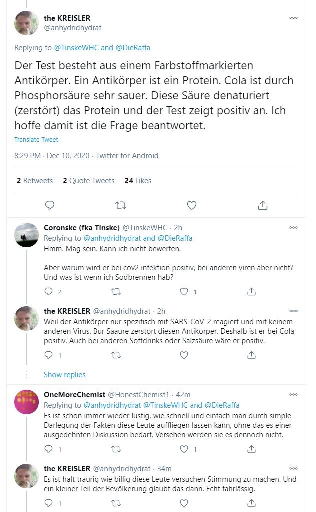 Hat der Reitschuster nicht recherchiert?Offenbar soll die Säure der Cola den Test überfordern, irgendein Eiweiß auflösen, sodass der Test positiv wird.