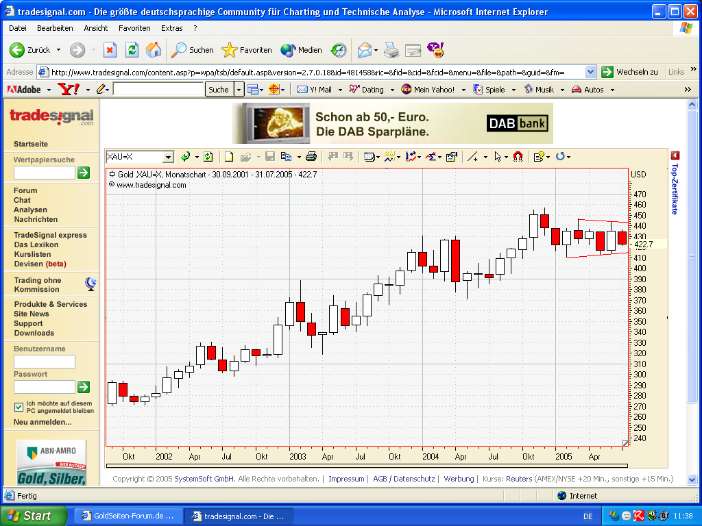 achtung beim gold muss die 424 nun halten sonst wirds dem gold wie dem euro in den letzten wochen gehen also vorsicht!