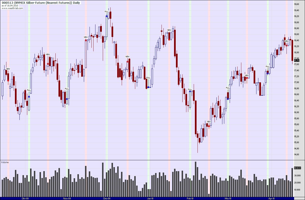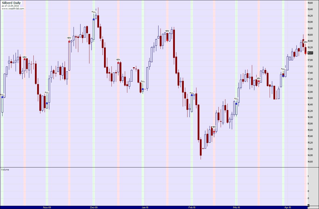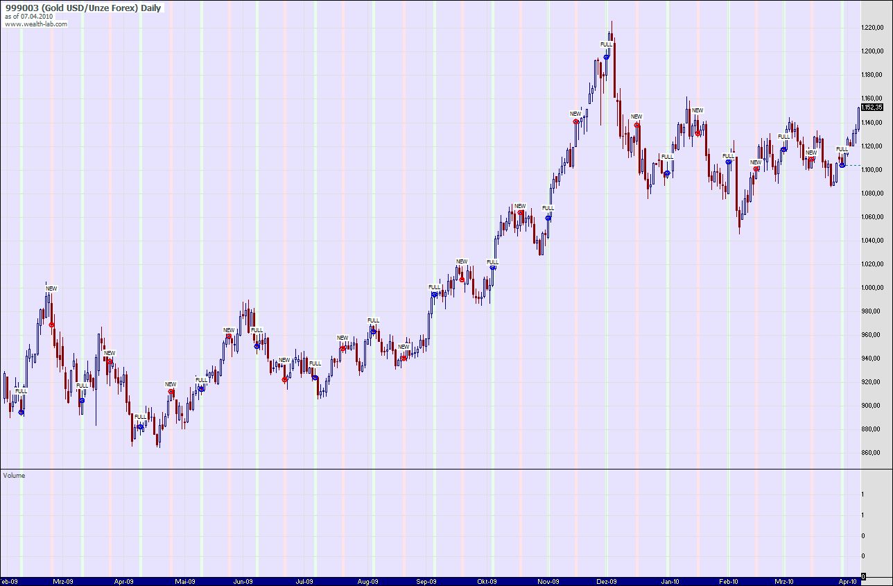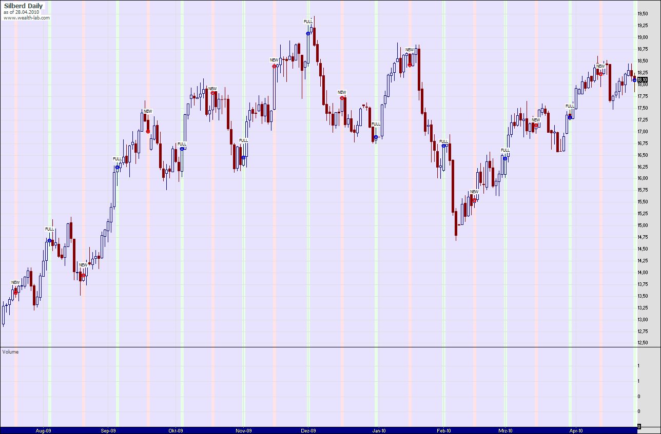 Und hier zeigt sich der Rohstoffsektor, insbesondere der Edelmetallmarkt sehr stark "mondsüchtig".
